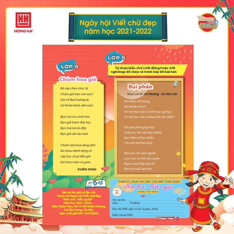 - Dụng cụ thi sử dụng tại Ngày hội viết chữ đẹp: Bút máy nét hoa Hồng Hà mã số 2256 và mẫu giấy ô ly viết chữ đẹp Hồng Hà.